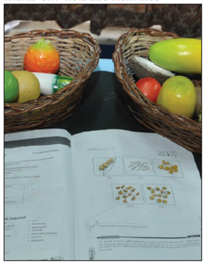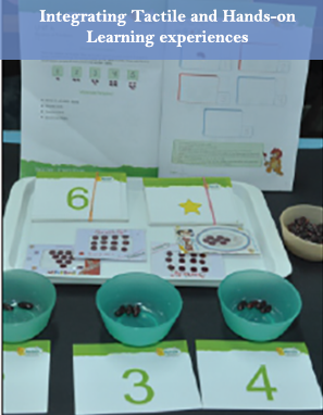 The teacher will show a picture card and the children have to show the corresponding number card.