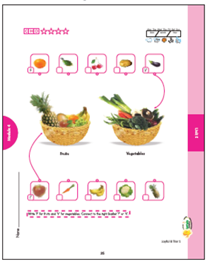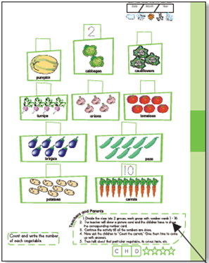 Theme vegetables are integrated in Wonder Me! The teaching of numbers, and arts & crafts combined with the teaching of animals, as examples