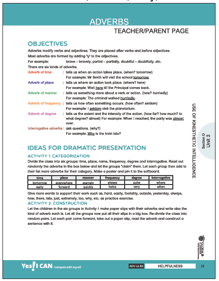 Standard answers are provided and models for writing, for example, Children learn to fix their own mistakes.
