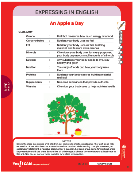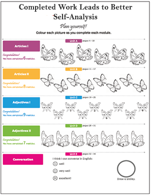 “My Log of Completed Work” is coloured by the children upon completion of each module.