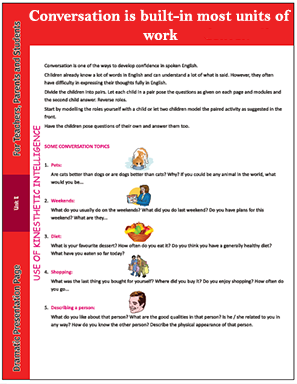 Conversation pages and notes at the bottom of most pages elicit a lot of conversation in both English and a second language.